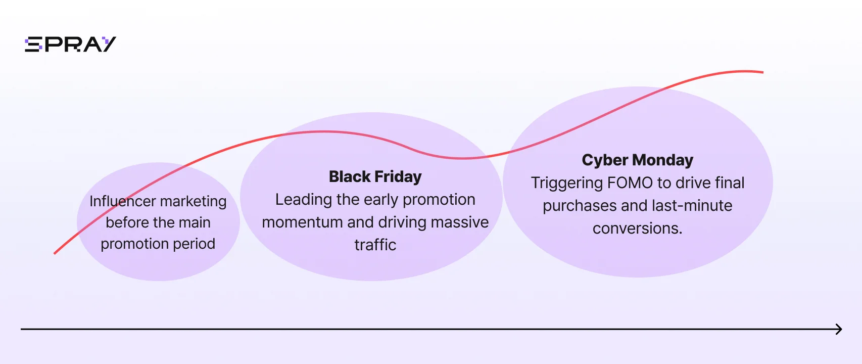Particularly during the BFCM (Black Friday-Cyber Monday) period when urgency is crucial, collaborating with influencers with high community cohesion and active follower engagement can significantly increase purchase conversion rates.