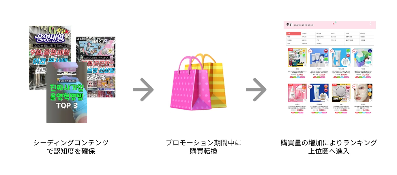 このように、シーディングコンテンツを起点に「認知→購入→ランキング上昇」という好循環が形成され、ブランドは長期的な露出と売上成長効果を得ることができます。