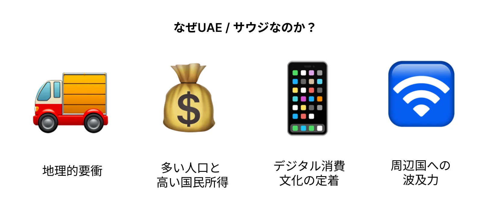 つまり、UAEへの進出は、中東全体へ展開するための足がかりを自然に築くことにつながります。