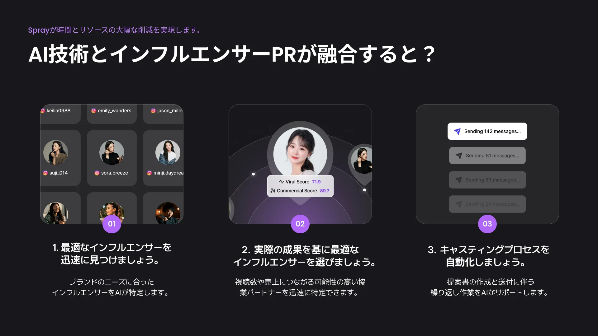 そこで私たちは、中東インフルエンサーを効率的に発掘できるAIシーディングソリューション Spray をご紹介します。