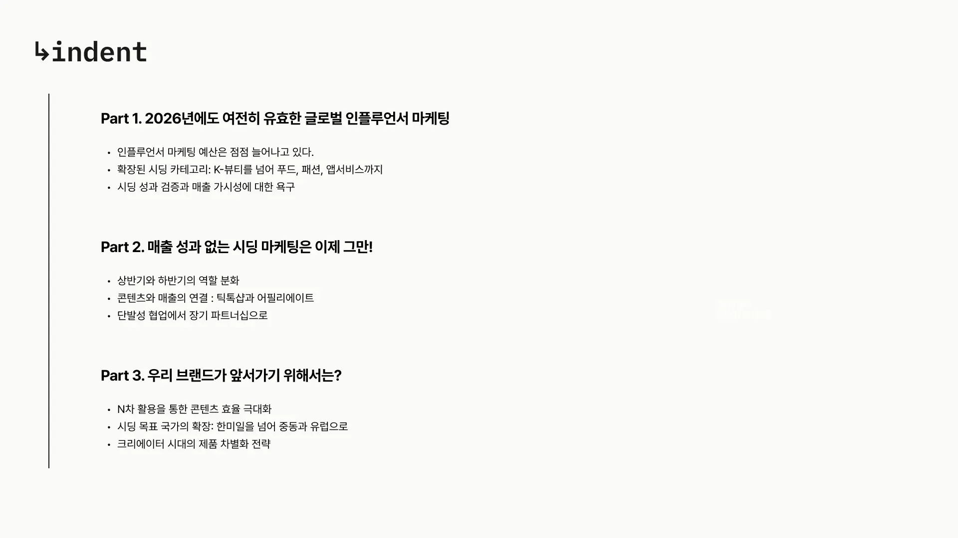인플루언서 마케팅 담당자들이 공통적으로 던지는 질문과, 2026년을 앞두고 반드시 짚어봐야 할 핵심 이슈를 중심으로 내용을 구성했습니다.
