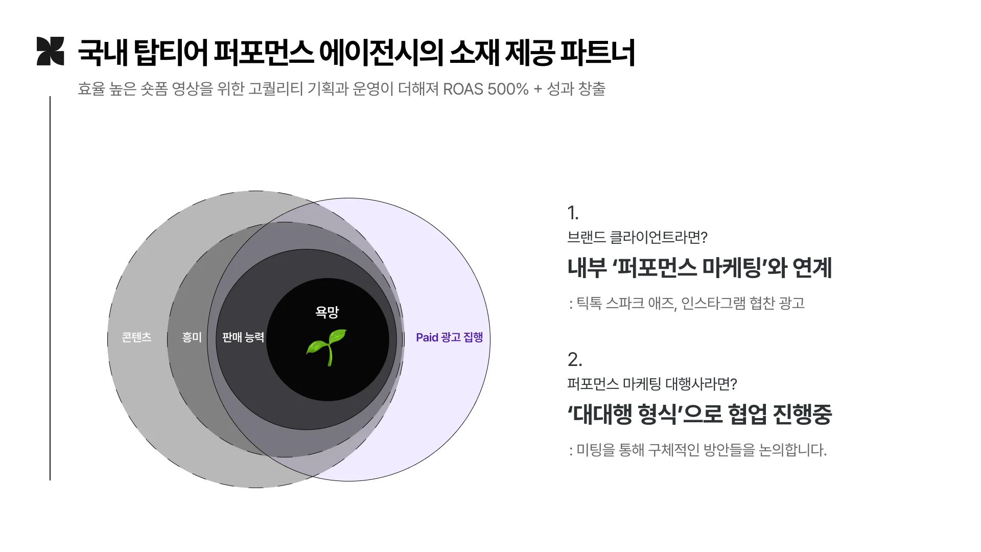 최근 저희가 운영하는 에이전시 서비스, ‘제리와콩나무’에서도 국내 시딩을 통해 ROAS 500%, 3개월간 일매출 2배와 같은 좋은 성과를 꾸준히 발굴하고 있는데요.