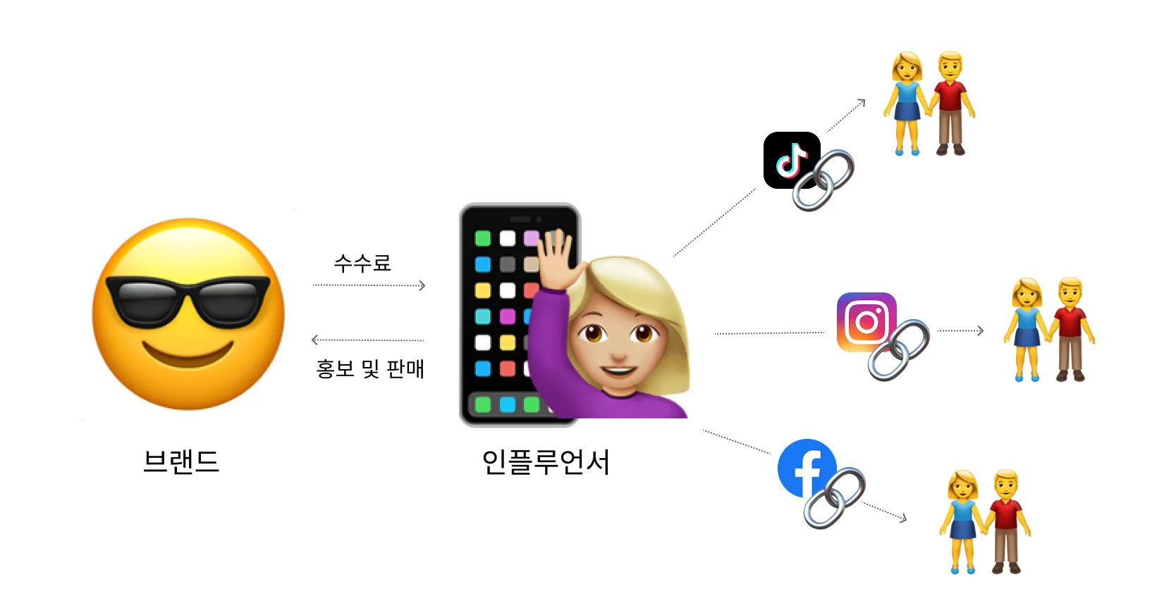 이후 인플루언서들은 콘텐츠를 업로드할 때 구매 링크를 걸고, 브랜드는 해당 링크를 통해 판매가 이루어진 만큼 수수료를 지급하였습니다.