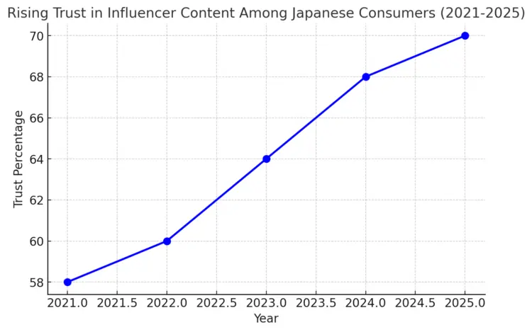 유럽의 디지털 마케팅 에이전시 ‘AWISEE’의 조사에 따르면 일본 소비자들의 인플루언서 콘텐츠에 대한 신뢰도는 지난 5년간 꾸준히 상승해 왔다고 합니다.