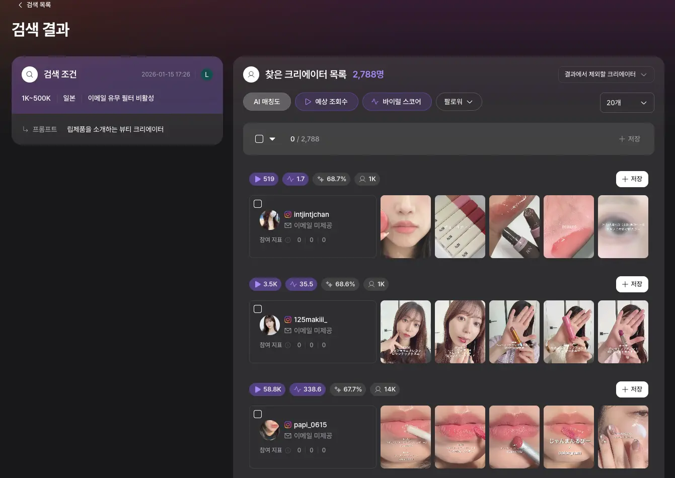 이러한 상황에서는 시중에 나와 있는 시딩 솔루션이나 인플루언서 매칭 툴을 활용해 초기 인플루언서 리스트업 과정을 효율화하는 것이 하나의 대안이 될 수 있습니다.