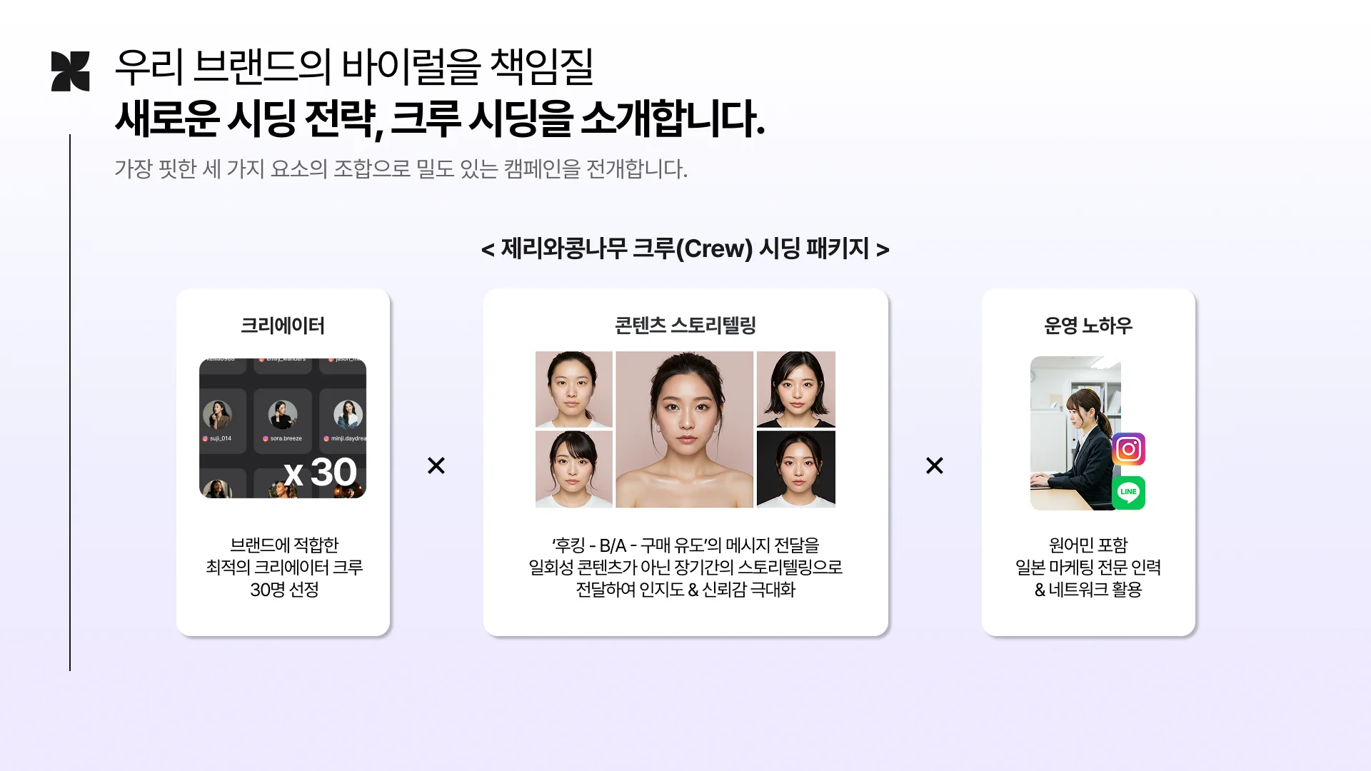 그래서 저희는 미디어와 커뮤니티의 바이럴을 동시에 일으킬 수 있는 제리와 콩나무 ‘크루 시딩 패키지’를 제안드리려고 합니다.